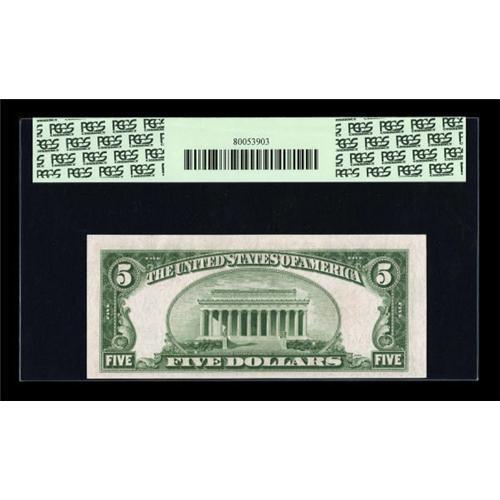 <B>Fr. 1529 $5 1928D Legal Tender Note. PCGS Choice New 63PPQ.</B></I><BR> Bold embossing remains visible on this note with a tight bottom margin.<BR><BR><b>Shipping:</b> Coins & Currency (<a target="_blank" href="http://www.heritageauctions.com/common/shipping.php">view shipping information</a>)