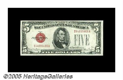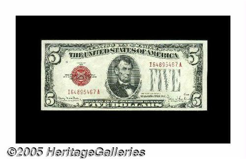 <B>Fr. 1531 $5 1928F Legal Tender Notes. Changeover Pair Narrow/Wide I. Gem Crisp Uncirculated.</B></I><BR>A virtually flawless changeover pair displaying pristine paper surfaces.<BR>
