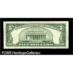 <B>Fr. 1531* $5 1928F Narrow Legal Tender Note. Very Fine.</B></I><BR>A very rare star which is one of fewer than a dozen and a half examples known in all grades. This specimen traces its pedigree back to the Jim Thompson holdings. While the note is bright, the paper surfaces are a bit soft. Lot:15626