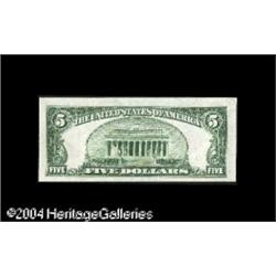 Fr. 1531* $5 1928F Wide 1 Legal Tender Note. Choice Cri <B>Fr. 1531* $5 1928F Wide 1 Legal Tender Note. Choice Crisp Uncirculated.</B></I><BR>A bright example of this harder to find star. <BR><BR><B>Important notice:</B> Heritage usually auctions material at the rate of 200-250 lots per hour. On some occasions eBay Live bid software or the Internet may not be able to keep up with the pace of the auction. We recommend placing a realistic absentee bid now as insurance to avoid disappointment. Occasionally the auctioneer may eliminate or reject an eBay Live bid, and the auctioneer may also reopen a lot after the close of the eBay live bidding (usually because we missed an audience bid), and may reject your bid even if it shows you as the winning bidder. By bidding via eBay Live, you agree that Heritage may award the lot to another bidder at its sole discretion under the circumstances described above or any other reasonable circumstances. Since eBay bids are not shown to us until we open the lot on the floor, we treat those bids just like floor bids. In most cases the floor responds before the eBay bid is presented to us, due to Internet lag time, so for consistency we have made it a policy that floor bids are always considered first over tie eBay live bids. Also please note that all Heritage lots purchased through eBay Live carry a 20% Buyer's Premium. Please make sure you read the Terms and Conditions before you bid. This lot is being auctioned in conjunction with a live floor auction by Heritage Galleries & Auctioneers. All final auction and invoice information will be supplied by Heritage Galleries & Auctioneers, and all other information should be considered preliminary. Lot:16181