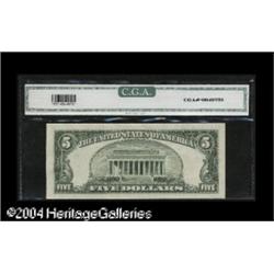 Fr. 1531* $5 1928F Wide 1 Legal Tender Note. Gem Crisp <B>Fr. 1531* $5 1928F Wide 1 Legal Tender Note. Gem Crisp Uncirculated.</B></I><BR>A gorgeous example with huge margins and great color. It's been graded as <B>Gem Uncirculated 68</B></I> by CGA, a grade it certainly appears to completely merit. <BR><BR><B>Important notice:</B> Heritage usually auctions material at the rate of 200-250 lots per hour. On some occasions eBay Live bid software or the Internet may not be able to keep up with the pace of the auction. We recommend placing a realistic absentee bid now as insurance to avoid disappointment. Occasionally the auctioneer may eliminate or reject an eBay Live bid, and the auctioneer may also reopen a lot after the close of the eBay live bidding (usually because we missed an audience bid), and may reject your bid even if it shows you as the winning bidder. By bidding via eBay Live, you agree that Heritage may award the lot to another bidder at its sole discretion under the circumstances described above or any other reasonable circumstances. Since eBay bids are not shown to us until we open the lot on the floor, we treat those bids just like floor bids. In most cases the floor responds before the eBay bid is presented to us, due to Internet lag time, so for consistency we have made it a policy that floor bids are always considered first over tie eBay live bids. Also please note that all Heritage lots purchased through eBay Live carry a 20% Buyer's Premium. Please make sure you read the Terms and Conditions before you bid. This lot is being auctioned in conjunction with a live floor auction by Heritage Galleries & Auctioneers. All final auction and invoice information will be supplied by Heritage Galleries & Auctioneers, and all other information should be considered preliminary. Lot:16178