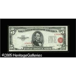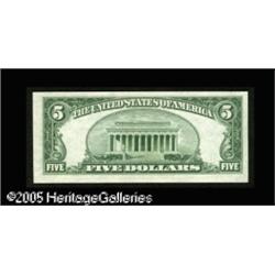 <B>Fr. 1532 $5 1953 Legal Tender Note. Choice New.</B></I><BR>This severely shifted third printing is a rare error on a $5 Red Seal. Lot:15230