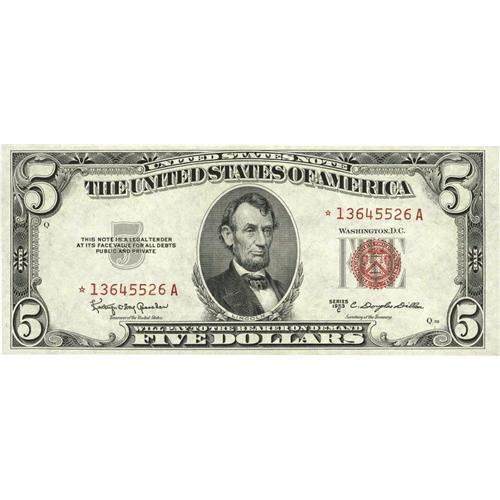 <B>Fr. 1535* $5 1953C Legal Tender Note. Very Choice Crisp Uncirculated.</B></I><BR>Nice paper wave is seen on this creamy white note with decent margins.