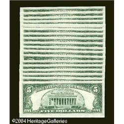 Fr. 1536* $5 1963 Legal Tender Notes. Gem Crisp Uncircu <B>Fr. 1536* $5 1963 Legal Tender Notes. Gem Crisp Uncirculated.</B></I><BR>A nice group of eighteen gem star notes.<BR> 18 notes <BR><BR><B>Important notice:</B> Heritage usually auctions material at the rate of 200-250 lots per hour. On some occasions eBay Live bid software or the Internet may not be able to keep up with the pace of the auction. We recommend placing a realistic absentee bid now as insurance to avoid disappointment. Occasionally the auctioneer may eliminate or reject an eBay Live bid, and the auctioneer may also reopen a lot after the close of the eBay live bidding (usually because we missed an audience bid), and may reject your bid even if it shows you as the winning bidder. By bidding via eBay Live, you agree that Heritage may award the lot to another bidder at its sole discretion under the circumstances described above or any other reasonable circumstances. Since eBay bids are not shown to us until we open the lot on the floor, we treat those bids just like floor bids. In most cases the floor responds before the eBay bid is presented to us, due to Internet lag time, so for consistency we have made it a policy that floor bids are always considered first over tie eBay live bids. Also please note that all Heritage lots purchased through eBay Live carry a 20% Buyer's Premium. Please make sure you read the Terms and Conditions before you bid. This lot is being auctioned in conjunction with a live floor auction by Heritage Galleries & Auctioneers. All final auction and invoice information will be supplied by Heritage Galleries & Auctioneers, and all other information should be considered preliminary. Lot:16185