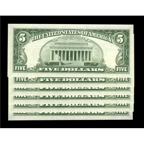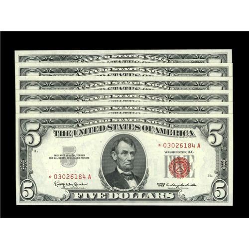Fr. 1536* $5 1963 Legal Tender Notes. Six Notes. Gem Cr Fr. 1536* $5 1963 Legal Tender Notes. Six No