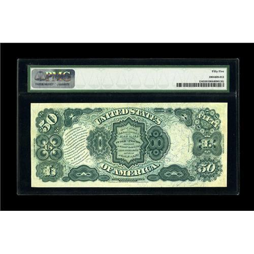 <B>Fr. 154 $50 1878 Legal Tender PMG About Uncirculated 55.</B></I> There are less than 20 serial numbers documented for this Friedberg number with only two of those notes rivaling this example in appearance. Whatever the graders saw on the note presented here, we cannot see it through the third-party holder. However, we do see that this perennially favorite note is nicely framed with wide margins.<BR><BR><b>Shipping:</b> Coin/Currency (<a target="_blank" href="http://www.heritageauctions.com/common/shipping.php">view shipping information</a>)
