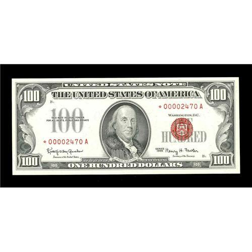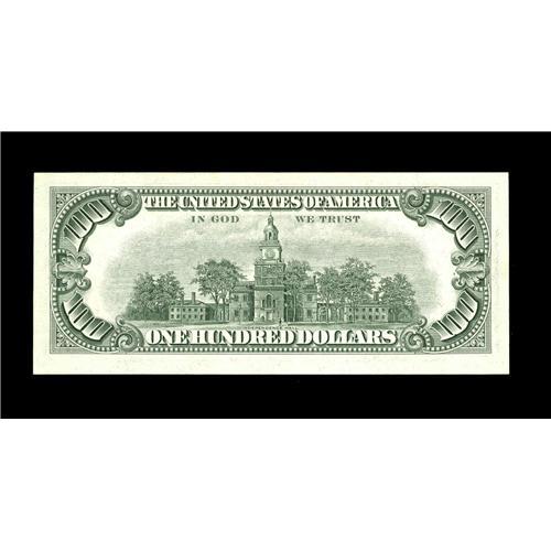 <B>Fr. 1550* $100 1966 Legal Tender Note. Gem Crisp Uncirculated.</B></I><BR>A lovely example of this latter day rarity. This piece is one of the first 4000 examples released in Puerto Rico that were brought back to the mainland by Amon Carter, Jr. and offered to collectors soon thereafter.