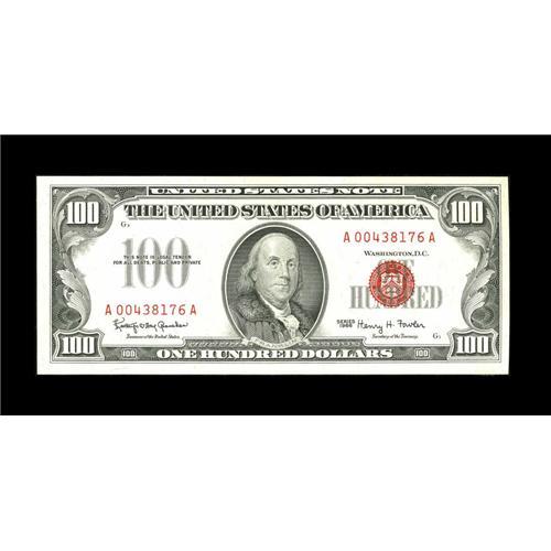 <B>Fr. 1550 $100 1966 Legal Tender Note. Gem Crisp Uncirculated.</B></I><BR>Ample margins and a dark red overprint add up to a winning note with embossing.<BR><I>From The Rolling Plains Collection</B></I><BR><BR><b>Shipping:</b> Coins & Currency (<a target="_blank" href="http://www.heritageauctions.com/common/shipping.php">view shipping information</a>)