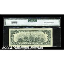 Fr. 1550 $100 1966 Legal Tender Note. Gem Crisp Uncirculated.Another of the consecutive foursome, this also a lovely example graded as Gem Uncirculated 65 by CGA. <BR><BR><B>Important notice:</B> Heritage usually auctions material at the rate of 200-250 lots per hour. On some occasions eBay Live bid software or the Internet may not be able to keep up with the pace of the auction. We recommend placing a realistic absentee bid now as insurance to avoid disappointment. Occasionally the auctioneer may eliminate or reject an eBay Live bid, and the auctioneer may also reopen a lot after the close of the eBay live bidding (usually because we missed an audience bid), and may reject your bid even if it shows you as the winning bidder. By bidding via eBay Live, you agree that Heritage may award the lot to another bidder at its sole discretion under the circumstances described above or any other reasonable circumstances. Since eBay bids are not shown to us until we open the lot on the floor, we treat those bids just like floor bids. In most cases the floor responds before the eBay bid is presented to us, due to Internet lag time, so for consistency we have made it a policy that floor bids are always considered first over tie eBay live bids. Also please note that all Heritage lots purchased through eBay Live carry a 20% Buyer's Premium. Please make sure you read the Terms and Conditions before you bid. <BR><BR><B>IMPORTANT ANNOUNCEMENT ABOUT RESERVES:</B> Heritage now divulges all reserves on its web site 7 days before every auction. If you want to know whether the reserve on this lot has been met, and if not, what the reserve amount is, please visit this lot page on the HeritageCoin.com web site, or email: bid@HeritageGalleries.com