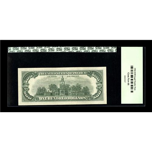 <B>Fr. 1550 $100 1966 Legal Tender Note. PCGS Gem New 66.</B></I><BR>A superlative example of this always in demand type displaying captivating boardwalk margins.<BR><BR><b>Shipping:</b> Coins & Currency (<a target="_blank" href="http://www.heritageauctions.com/common/shipping.php">view shipping information</a>)