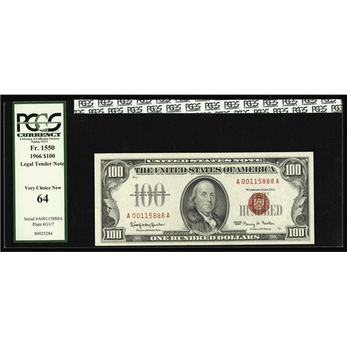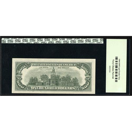 <B>Fr. 1550 $100 1966 Legal Tender Note. PCGS Very Choice New 64.</B></I><BR>A bright example which, with just a hair better centering, would likely have made the Gem 65 designation.
