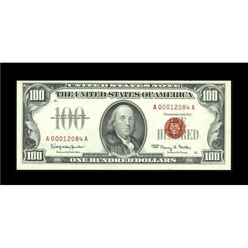 <B>Fr. 1550 $100 1966 Legal Tender Note. Very Choice Crisp Uncirculated.</B></I><BR>A perfectly original Legal $100 with deep embossing and bold color.<BR><BR><b>Shipping:</b> Coin/Currency (<a target="_blank" href="http://www.heritageauctions.com/common/shipping.php">view shipping information</a>)
