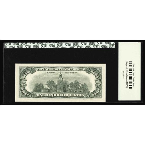 <B>Fr. 1550* $100 1966 Legal Tender Note. PCGS Superb Gem New 69PPQ.</B></I><BR>This is a simply extraordinary note which combines both true scarcity and unbelievable grade. We have seen a few recently issued notes such as 1995 $2 Feds carrying grades of 69 or 70, but for a really important and well recognized rarity to carry a PCGS grade of Superb Gem New 69 PPQ is highly unusual. We know of one other 1966 Legal Tender star carrying the 69 grade which traded hands for $12,500, but, with that piece in very strong hands, it is unlikely that figure could buy another such example today. This is a perfectly centered and pristine example that, no doubt, will highlight a Registry Set of currency in the future. Our best guess here (and one that may indeed be conservative for such an item) is...