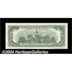 Fr. 1551 $100 1966A Legal Tender Note. Gem Crisp Uncirculated.As nice as any example of this late day rarity we've had in years, with micrometer perfect centering on both front and back, total originality, and the color and freshness of a note printed this morning. <BR><BR><B>Important notice:</B> Heritage usually auctions material at the rate of 200-250 lots per hour. On some occasions eBay Live bid software or the Internet may not be able to keep up with the pace of the auction. We recommend placing a realistic absentee bid now as insurance to avoid disappointment. Occasionally the auctioneer may eliminate or reject an eBay Live bid, and the auctioneer may also reopen a lot after the close of the eBay live bidding (usually because we missed an audience bid), and may reject your bid even if it shows you as the winning bidder. By bidding via eBay Live, you agree that Heritage may award the lot to another bidder at its sole discretion under the circumstances described above or any other reasonable circumstances. Since eBay bids are not shown to us until we open the lot on the floor, we treat those bids just like floor bids. In most cases the floor responds before the eBay bid is presented to us, due to Internet lag time, so for consistency we have made it a policy that floor bids are always considered first over tie eBay live bids. Also please note that all Heritage lots purchased through eBay Live carry a 20% Buyer's Premium. Please make sure you read the Terms and Conditions before you bid. <BR><BR><B>IMPORTANT ANNOUNCEMENT ABOUT RESERVES:</B> Heritage now divulges all reserves on its web site 7 days before every auction. If you want to know whether the reserve on this lot has been met, and if not, what the reserve amount is, please visit this lot page on the HeritageCoin.com web site, or email: bid@HeritageGalleries.com
