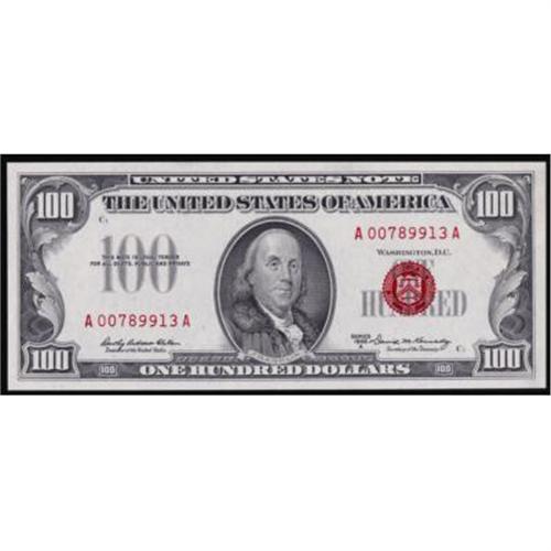 <style type="text/css"> body, td, th { font-family: Arial, Helvetica, sans-serif; font-size: 12px; color: #482424; margin: 0px; padding: 0px; } #header { background-image: url(http://www.bowersandmerena.com/ebay/images/template_v3_01.gif); clear: both; background-color: #590303; border-top-width: 2px; border-top-style: solid; border-top-color: #B38C4F;}#header #header_wrapper { height: 75px; clear: both; width: 800px; margin-right: auto; margin-left: auto; background-image: url(http://www.bowersandmerena.com/ebay/images/template_v3_03.gif); background-repeat: no-repeat; background-position: right; color: #F3EDCC;}#header #header_wrapper #header_logo { float: left; height: 75px; width: 444px; background-image: url(http://www.bowersandmerena.com/ebay/images/template_v3_02.gif); background-repeat: no-repeat; font-size: 10px; text-transform: capitalize; color: #B38C4F;}#header #header_wrapper #header_right { float: left; height: 75px; width: 356px; text-align: right;}#header #header_wrapper #header_right #headerLoginBtn { margin-bottom: 30px;}#header #header_wrapper #header_right input#txtSearch { color: #B49056; border: 1px solid #B49056; width: 175px; padding-top: 3px; padding-right: 3px; padding-bottom: 4px; padding-left: 3px;}#nav { height: 37px; background-image: url(http://www.bowersandmerena.com/ebay/images/template_v3_05.gif); clear: both;}#nav #nav_wrapper { height: 35px; width: 800px; margin-right: auto; margin-left: auto; border-left-width: 1px; border-left-style: solid; border-left-color: #B38C4F;}#nav #nav_wrapper a { padding-right: 15px; padding-left: 15px; border-right-width: 1px; border-right-style: solid; border-right-color: #B38C4F; height: 25px; padding-top: 10px; display: block; float: left; text-decoration: none; font-weight: bold; color: #5D0303;}#nav #nav_wrapper a:hover { color: #B38C4F;}#nav #nav_wrapper #search { float: right; padding-top: 7px;}#nav #nav_wrapper #search #txtSearch { font-family: Arial, Helvetica, sans-serif; font-size: 10px; text-transform: uppercase; color: #D2AE75; border: 1px solid #B38C4F; padding: 3px;}#content_bgd { background-image: url(http://www.bowersandmerena.com/ebay/images/template_v3_09.gif); background-repeat: repeat-y; background-position: center; padding-top: 15px; padding-bottom: 15px; background-color: #FBFBDB;}#content_wrapper { clear: both; height: auto; width: 800px; margin-right: auto; margin-left: auto;}.LotDetailWhite{ line-height:normal; font-size:13px; font-family: arial,helvetica,sans-serif; color: White; font-weight: bold;}.LotDetailInformation{ line-height:normal; font-size: 13px; font-family: arial,helvetica,sans-serif;}.LotDetailMessage{ line-height:normal; font-size: 13px; font-family: arial,helvetica,sans-serif; color: red;}}tr.HeaderAuctionTitle td { color: #000000; font-weight: bold; padding: 2px; background-image: url(http://www.bowersandmerena.com/ebay/images/template_v3_05.gif); background-repeat: repeat-x; border-bottom-width: 1px; border-bottom-style: solid; border-bottom-color: #B38C4F;}table.AuctionSummary a, table.AuctionSummary a:link, table.AuctionSummary a:visited { color: #0000FF; text-decoration: none;}}td.tableHeaderLeft { border-left-width: 1px; border-left-style: solid; border-left-color: #B38C4F;}td.tableHeaderRight { border-right-width: 1px; border-right-style: solid; border-right-color: #B38C4F;}td.tableCellMiddle { border-left-width: 1px; border-left-style: solid; border-left-color: #B38C4F; border-right-width: 1px; border-right-style: solid; border-right-color: #B38C4F; padding: 5px;}tr.footer td { border-top-width: 1px; border-top-style: solid; border-top-color: #B38C4F;}</style></head><body><div id="header"> <div id="header_wrapper"> <div id="header_logo"> </div> <div id="header_right"> </div> </div></div><div id="nav"> <div id="nav_wrapper"> <a href="http://www.bowersandmerena.com">Our eBayLive Auctions</a> <a href="#PaymentInfo">Payment Information</a> <a href="#ShippingInfo">Shipping Information</a> <a href="#About">About Bowers and Merena</a> </div></div><div id="content_bgd"> <div id="content_wrapper"> <table width="100%" border="0" cellpadding="5" cellspacing="0" class="AuctionSummary"> <tbody> <tr class="HeaderAuctionTitle" style="height: 25px;"> <td align="left" class="tableHeaderLeft" > </td> <td align="center" class="tableHeaderRight"> <span style="font-size: large;">Lot #124. Fr. 1551. 1966A $100 Legal Tender Note. PMG Superb Gem Uncirculated 67EPQ.</span> </td> </tr> <tr> <td colspan="3" class="tableCellMiddle"> An exceptional note with every attribute of premium quality attached. We recommend that even those not seriously considering acquiring this note examine it at lot viewing for the educational value of seeing what quality at this level actually looks like as a reference point for future acquisitions. Possessed of such overwhelming quality that even the most finicky of perfectionists will be amply satisfied. Est. $3,250 - $3,750