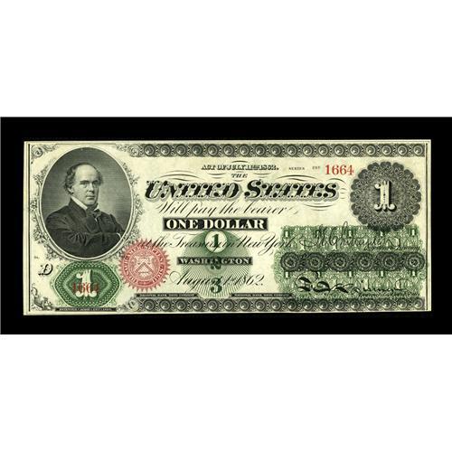 <B>Fr. 16 $1 1862 Legal Tender Choice New.</B></I> This perfectly original Legal Tender has been off the market since 1992. The colors are still as bold as ever and with the exception of a couple of pinholes, it is problem-free. A slightly larger bottom margin might have called for a higher grade.<BR><BR><b>Shipping:</b> Coin/Currency (<a target="_blank" href="http://www.heritageauctions.com/common/shipping.php">view shipping information</a>)