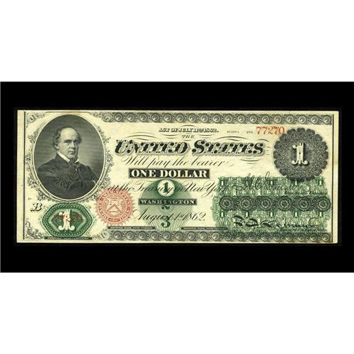 <B>Fr. 16 $1 1862 Legal Tender Extremely Fine-About New.</B></I> Much crispness remains on this bright example that is deeply inked.