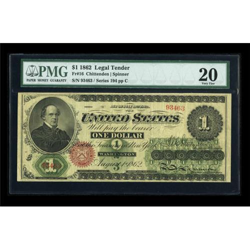 Fr. 16 $1 1862 Legal Tender PMG Very Fine 20.