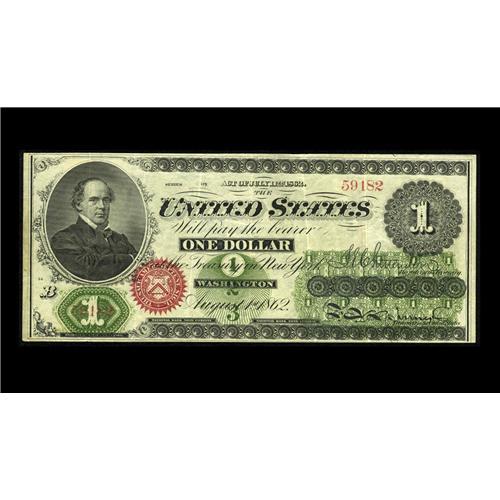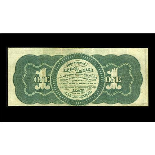 <B>Fr. 16 $1 1862 Legal Tender Very Fine-Extremely Fine.</B></I> It's the seven folds that hold the note halfway down to the VF grade, but it's beautifully bright, with little sign of actual circulation.