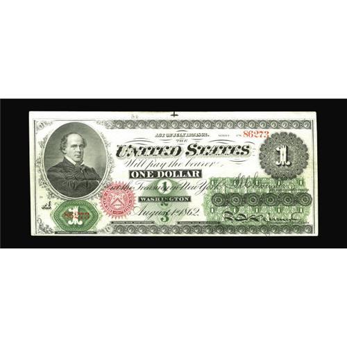 <B>Fr. 16 $1 1862 Legal Tender Very Fine-Extremely Fine.</B></I>This Ace has claims to the full XF grade, with bright white paper and a monstrous top margin.