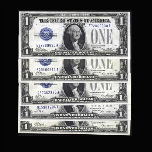Fr. 1600 $1 1928 Silver Certificates. Five ExamplesThis Fr. 1600 $1 1928 Silver Certificates. Five E