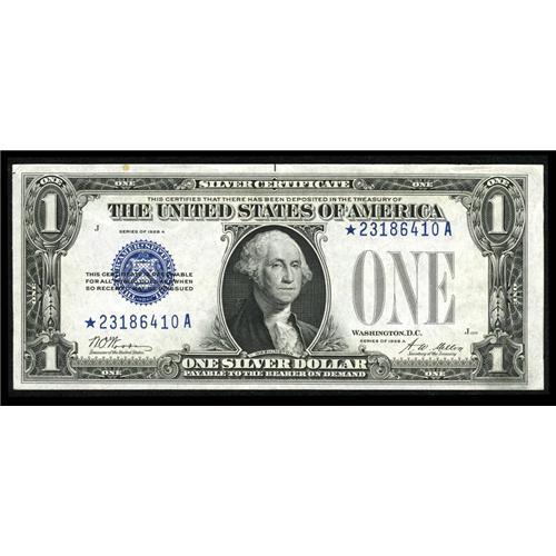 <B>Fr. 1601* $1 1928A Silver Certificate. About Uncirculated.</B></I><BR>A center fold and one small spot in the top margin are all that keep this note from a considerably higher grade.