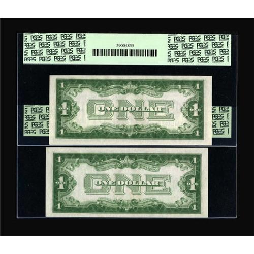 <B>Fr. 1601/Fr. 1602 $1 1928A/1928B Silver Certificates. Changeover Pair. PCGS Very Choice New 64PPQ and PCGS Gem New 66PPQ.</B></I><BR> A pleasing changeover pair with wholly original paper. The only difference in grade is margin size.<BR><BR><b>Shipping:</b> Coins & Currency (<a target="_blank" href="http://www.heritageauctions.com/common/shipping.php">view shipping information</a>)
