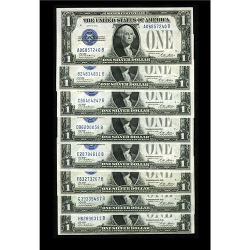 Fr. 1601 $1 1928A Silver Certificates. Eight Examples.T Fr. 1601 $1 1928A Silver Certificates. Eight