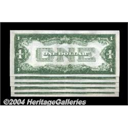 Fr. 1601 $1 1928A Silver Certificates. Five Consecutive Examples. Gem Crisp Uncirculated.Five wonderfully fresh, fully original Gems. 5 notes <BR><BR><B>Important notice:</B> Heritage usually auctions material at the rate of 200-250 lots per hour. On some occasions eBay Live bid software or the Internet may not be able to keep up with the pace of the auction. We recommend placing a realistic absentee bid now as insurance to avoid disappointment. Occasionally the auctioneer may eliminate or reject an eBay Live bid, and the auctioneer may also reopen a lot after the close of the eBay live bidding (usually because we missed an audience bid), and may reject your bid even if it shows you as the winning bidder. By bidding via eBay Live, you agree that Heritage may award the lot to another bidder at its sole discretion under the circumstances described above or any other reasonable circumstances. Since eBay bids are not shown to us until we open the lot on the floor, we treat those bids just like floor bids. In most cases the floor responds before the eBay bid is presented to us, due to Internet lag time, so for consistency we have made it a policy that floor bids are always considered first over tie eBay live bids. Also please note that all Heritage lots purchased through eBay Live carry a 20% Buyer's Premium. Please make sure you read the Terms and Conditions before you bid. <BR><BR><B>IMPORTANT ANNOUNCEMENT ABOUT RESERVES:</B> Heritage now divulges all reserves on its web site 7 days before every auction. If you want to know whether the reserve on this lot has been met, and if not, what the reserve amount is, please visit this lot page on the HeritageCoin.com web site, or email: bid@HeritageGalleries.com
