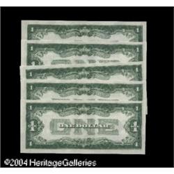 Fr. 1601 $1 1928A Silver Certificates. Gem Crisp Uncirc <B>Fr. 1601 $1 1928A Silver Certificates. Gem Crisp Uncirculated.</B></I><BR>A group of five consecutive, all with that just off the press crackle and snap to the paper that the collecting fraternity so prizes. 5 notes <BR><BR><B>Important notice:</B> Heritage usually auctions material at the rate of 200-250 lots per hour. On some occasions eBay Live bid software or the Internet may not be able to keep up with the pace of the auction. We recommend placing a realistic absentee bid now as insurance to avoid disappointment. Occasionally the auctioneer may eliminate or reject an eBay Live bid, and the auctioneer may also reopen a lot after the close of the eBay live bidding (usually because we missed an audience bid), and may reject your bid even if it shows you as the winning bidder. By bidding via eBay Live, you agree that Heritage may award the lot to another bidder at its sole discretion under the circumstances described above or any other reasonable circumstances. Since eBay bids are not shown to us until we open the lot on the floor, we treat those bids just like floor bids. In most cases the floor responds before the eBay bid is presented to us, due to Internet lag time, so for consistency we have made it a policy that floor bids are always considered first over tie eBay live bids. Also please note that all Heritage lots purchased through eBay Live carry a 20% Buyer's Premium. Please make sure you read the Terms and Conditions before you bid. This lot is being auctioned in conjunction with a live floor auction by Heritage Galleries & Auctioneers. All final auction and invoice information will be supplied by Heritage Galleries & Auctioneers, and all other information should be considered preliminary. Lot:16206