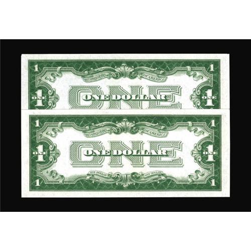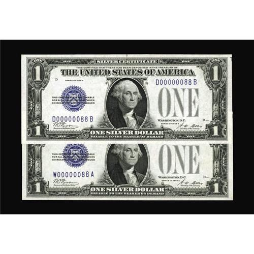 <B>Fr. 1601 $1 1928A Silver Certificates. Matched Serial Number 88 Gem Crisp Uncirculated.</B></I><BR>Both of these gorgeous examples exhibit even margins, in your face embossing and excellent color. Oh, did we mention they both carry serial number 88?