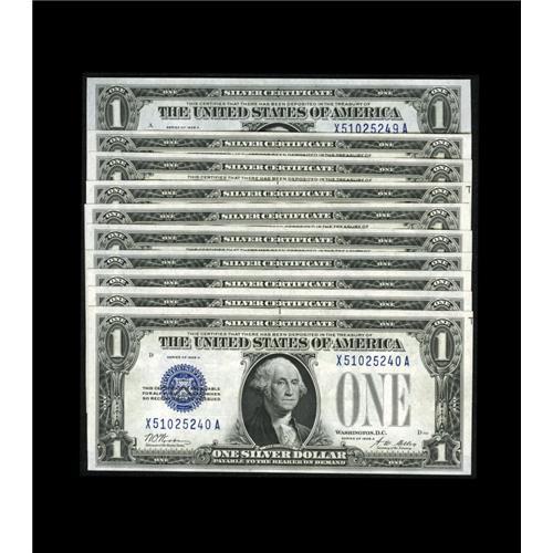 Fr. 1601 $1 1928A Silver Certificates. Ten Consecutive Fr. 1601 $1 1928A Silver Certificates. Ten Co