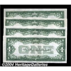 Fr. 1601/1602 $1 1928A/1928B Silver Certificates. Changeover and Reverse Changeover Pairs. Choice to Gem Crisp Uncirculated.Another nice changeover and reverse changeover set, these from the F-B and B-B blocks respectively. 4 notes <BR><BR><B>Important notice:</B> Heritage usually auctions material at the rate of 200-250 lots per hour. On some occasions eBay Live bid software or the Internet may not be able to keep up with the pace of the auction. We recommend placing a realistic absentee bid now as insurance to avoid disappointment. Occasionally the auctioneer may eliminate or reject an eBay Live bid, and the auctioneer may also reopen a lot after the close of the eBay live bidding (usually because we missed an audience bid), and may reject your bid even if it shows you as the winning bidder. By bidding via eBay Live, you agree that Heritage may award the lot to another bidder at its sole discretion under the circumstances described above or any other reasonable circumstances. Since eBay bids are not shown to us until we open the lot on the floor, we treat those bids just like floor bids. In most cases the floor responds before the eBay bid is presented to us, due to Internet lag time, so for consistency we have made it a policy that floor bids are always considered first over tie eBay live bids. Also please note that all Heritage lots purchased through eBay Live carry a 20% Buyer's Premium. Please make sure you read the Terms and Conditions before you bid. <BR><BR><B>IMPORTANT ANNOUNCEMENT ABOUT RESERVES:</B> Heritage now divulges all reserves on its web site 7 days before every auction. If you want to know whether the reserve on this lot has been met, and if not, what the reserve amount is, please visit this lot page on the HeritageCoin.com web site, or email: bid@HeritageGalleries.com
