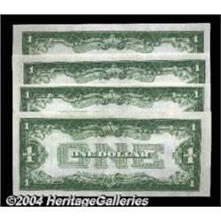 Fr. 1601/1602 $1 1928A/1928B Silver Certificates. Changeover and Reverse Changeover Pairs. Choice to Gem Crisp Uncirculated.This changeover and reverse changeover pair set is from the H-B block. 4 notes <BR><BR><B>Important notice:</B> Heritage usually auctions material at the rate of 200-250 lots per hour. On some occasions eBay Live bid software or the Internet may not be able to keep up with the pace of the auction. We recommend placing a realistic absentee bid now as insurance to avoid disappointment. Occasionally the auctioneer may eliminate or reject an eBay Live bid, and the auctioneer may also reopen a lot after the close of the eBay live bidding (usually because we missed an audience bid), and may reject your bid even if it shows you as the winning bidder. By bidding via eBay Live, you agree that Heritage may award the lot to another bidder at its sole discretion under the circumstances described above or any other reasonable circumstances. Since eBay bids are not shown to us until we open the lot on the floor, we treat those bids just like floor bids. In most cases the floor responds before the eBay bid is presented to us, due to Internet lag time, so for consistency we have made it a policy that floor bids are always considered first over tie eBay live bids. Also please note that all Heritage lots purchased through eBay Live carry a 20% Buyer's Premium. Please make sure you read the Terms and Conditions before you bid. <BR><BR><B>IMPORTANT ANNOUNCEMENT ABOUT RESERVES:</B> Heritage now divulges all reserves on its web site 7 days before every auction. If you want to know whether the reserve on this lot has been met, and if not, what the reserve amount is, please visit this lot page on the HeritageCoin.com web site, or email: bid@HeritageGalleries.com