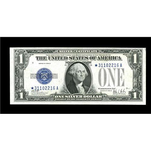 <B>Fr. 1602* $1 1928B Silver Certificate. Choice Crisp Uncirculated.</B></I><BR>An attractive example of this tough star, but lacking the centering necessary for the Gem grade.