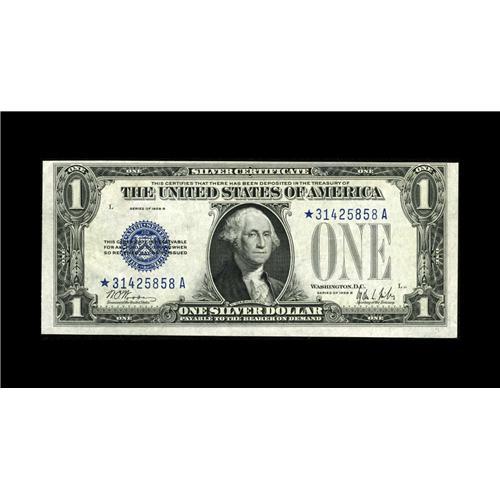 <B>Fr. 1602* $1 1928B Silver Certificate. Choice Crisp Uncirculated.</B></I><BR>Original paper surfaces are observed on this note that is centered a little bit high.<BR><I>From The Bill and Kathy Stella Currency Collection</B></I><BR><BR><b>Shipping:</b> Coin/Currency (<a target="_blank" href="http://www.heritageauctions.com/common/shipping.php">view shipping information</a>)