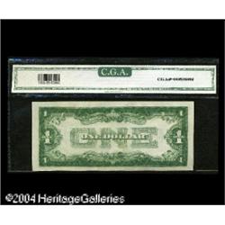 Fr. 1602 $1 1928B Silver Certificates. Three Consecutiv <B>Fr. 1602 $1 1928B Silver Certificate. CGA Gem Uncirculated 65.</B></I><BR>A lovely note from the X-B Experimental block and with its grade certified by CGA. <BR><BR><B>Important notice:</B> Heritage usually auctions material at the rate of 200-250 lots per hour. On some occasions eBay Live bid software or the Internet may not be able to keep up with the pace of the auction. We recommend placing a realistic absentee bid now as insurance to avoid disappointment. Occasionally the auctioneer may eliminate or reject an eBay Live bid, and the auctioneer may also reopen a lot after the close of the eBay live bidding (usually because we missed an audience bid), and may reject your bid even if it shows you as the winning bidder. By bidding via eBay Live, you agree that Heritage may award the lot to another bidder at its sole discretion under the circumstances described above or any other reasonable circumstances. Since eBay bids are not shown to us until we open the lot on the floor, we treat those bids just like floor bids. In most cases the floor responds before the eBay bid is presented to us, due to Internet lag time, so for consistency we have made it a policy that floor bids are always considered first over tie eBay live bids. Also please note that all Heritage lots purchased through eBay Live carry a 20% Buyer's Premium. Please make sure you read the Terms and Conditions before you bid. This lot is being auctioned in conjunction with a live floor auction by Heritage Galleries & Auctioneers. All final auction and invoice information will be supplied by Heritage Galleries & Auctioneers, and all other information should be considered preliminary. Lot:16208