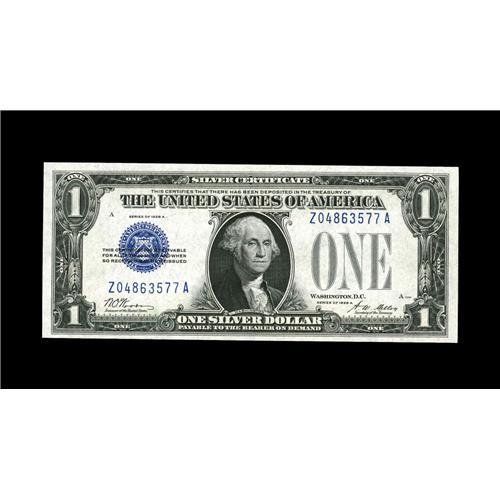 <B>Fr. 1602/1601 $1 1928B/1928A Silver Certificates. Reverse Changeover Pair. Very Choice Crisp Uncirculated.</B></I><BR>A very nice reverse changeover pair with both notes Gems but for centering.