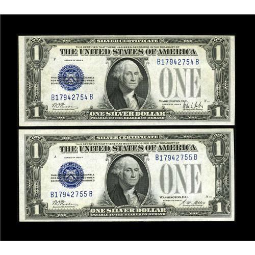 Fr. 1602/1601 $1 1928B/1928A Silvers Reverse Changeover
