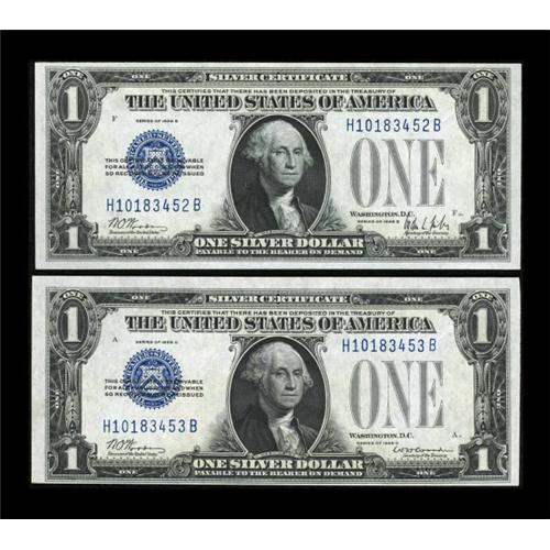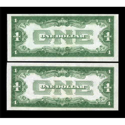 <B>Fr. 1602/Fr. 1603 $1 1928B/1928C Silver Certificates. Changeover Pair. Choice Crisp Uncirculated.</B></I><BR> This pair is one of only seven listed in the Schwartz census. Both pieces feature perfectly original paper waves and bold embossing.<BR><I>From The Drew Keough Collection</B></I><BR><BR><b>Shipping:</b> Coins & Currency (<a target="_blank" href="http://www.heritageauctions.com/common/shipping.php">view shipping information</a>)