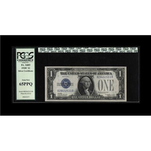 Fr. 1603 $1 1928C Silver Certificate. PCGS Gem New 65PP Fr. 1603 $1 1928C Silver Certificate. PCGS G