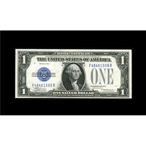 <B>Fr. 1604 $1 1928D Silver Certificate. Choice Crisp Uncirculated.</B></I><BR>Here is a crackling fresh and utterly original example of the F-B block, the scarcest of this issue. If the centering were a bit better this would easily make the gem grade.
