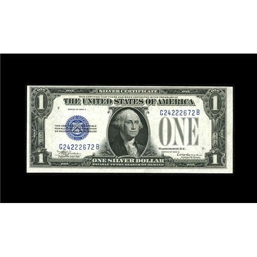 <B>Fr. 1604 $1 1928D Silver Certificate. Crisp Uncirculated.</B></I><BR>This example from the G-B block is quite crisp with a tight top margin and some counting marks visible on each side.