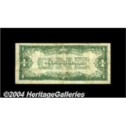 Fr. 1604* $1 1928D Silver Certificate. Fine.It is an extraordinary offering that has not one but two examples of this rare star available to the collecting fraternity, as this star has actually been offered fewer times than the more celebrated 1928E star. This piece, from the Thomson collection, is an evenly circulated and problem free example which would make a perfect addition to any advanced collection of circulated star notes. <BR><BR><B>Important notice:</B> Heritage usually auctions material at the rate of 200-250 lots per hour. On some occasions eBay Live bid software or the Internet may not be able to keep up with the pace of the auction. We recommend placing a realistic absentee bid now as insurance to avoid disappointment. Occasionally the auctioneer may eliminate or reject an eBay Live bid, and the auctioneer may also reopen a lot after the close of the eBay live bidding (usually because we missed an audience bid), and may reject your bid even if it shows you as the winning bidder. By bidding via eBay Live, you agree that Heritage may award the lot to another bidder at its sole discretion under the circumstances described above or any other reasonable circumstances. Since eBay bids are not shown to us until we open the lot on the floor, we treat those bids just like floor bids. In most cases the floor responds before the eBay bid is presented to us, due to Internet lag time, so for consistency we have made it a policy that floor bids are always considered first over tie eBay live bids. Also please note that all Heritage lots purchased through eBay Live carry a 20% Buyer's Premium. Please make sure you read the Terms and Conditions before you bid. <BR><BR><B>IMPORTANT ANNOUNCEMENT ABOUT RESERVES:</B> Heritage now divulges all reserves on its web site 7 days before every auction. If you want to know whether the reserve on this lot has been met, and if not, what the reserve amount is, please visit this lot page on the HeritageCoin.com web site, or email: bid@HeritageGalleries.com