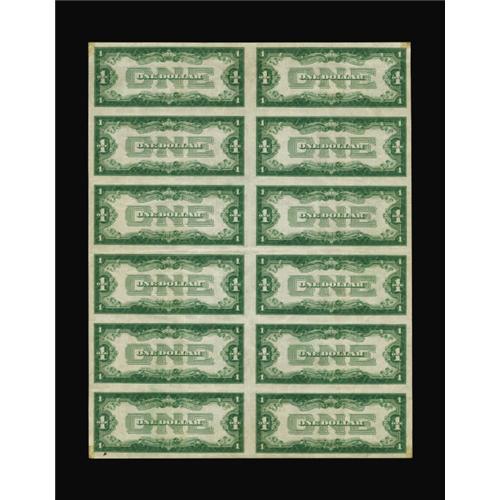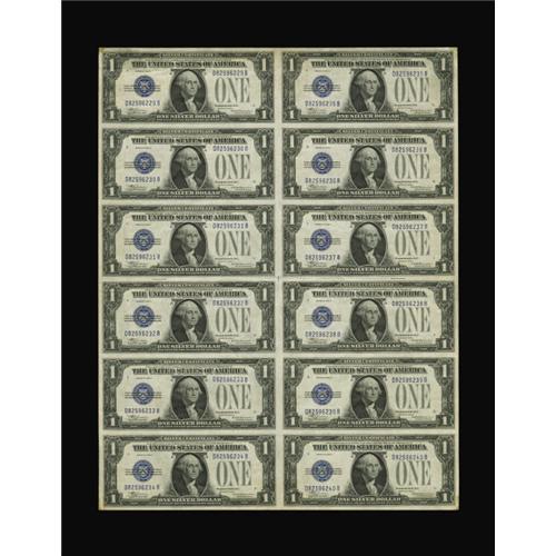 <B>Fr. 1604 $1 1928D Silver Certificate. Uncut Sheet of 12. Extremely Fine.</B></I><BR> This Silver Certificate uncut sheet is from the third scarcest series. It has a light lateral fold through the central axis and a little other handling is noticed. There are also adhesive spots in each corner. The notes are nicely centered on the sheet leaving it with four broad margins. Overall, a quite attractive item with embossing and dark inks, too.<BR><BR><b>Shipping:</b> Coins & Currency (<a target="_blank" href="http://www.heritageauctions.com/common/shipping.php">view shipping information</a>)