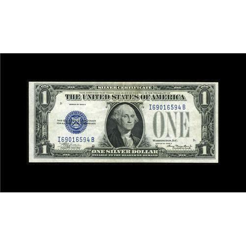 <B>Fr. 1605 $1 1928E Silver Certificate. Very Fine-Extremely Fine.</B></I><BR>Light folds and handling appear on this well embossed original mid-grade key note from the I-B block.