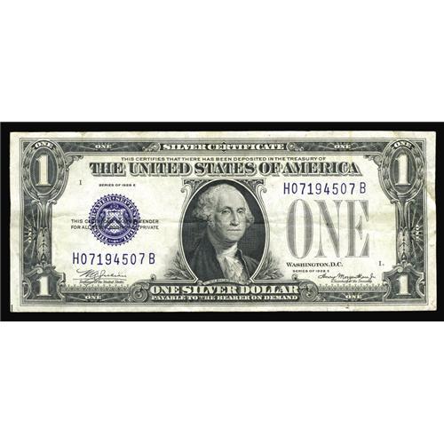 <B>Fr. 1605 $1 1928E Silver Certificate. Very Fine-Extremely Fine.</B></I><BR>This fully crisp key note is very close to the higher grade and is enhanced by exceptionally wide margins all around.