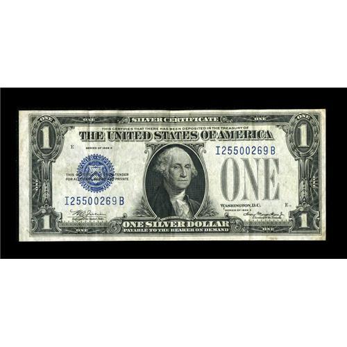<B>Fr. 1605 $1 1928E Silver Certificate. Very Fine-Extremely Fine.</B></I><BR>Light folds and handling appear on this well embossed original mid-grade key note from the I-B block.<BR><BR><b>Shipping:</b> Coins & Currency (<a target="_blank" href="http://www.heritageauctions.com/common/shipping.php">view shipping information</a>)