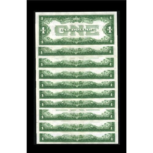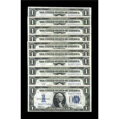 <B>Fr. 1606 $1 1934 Silver Certificate. Choice-Gem Crisp Uncirculated.</B></I><BR> A run of ten consecutive examples, all <B>Choice </B></I>or <B>Gem Crisp Uncirculated</B></I> depending on the vagaries of centering. <BR><BR><b>Shipping:</b> Coins & Currency (<a target="_blank" href="http://www.heritageauctions.com/common/shipping.php">view shipping information</a>)