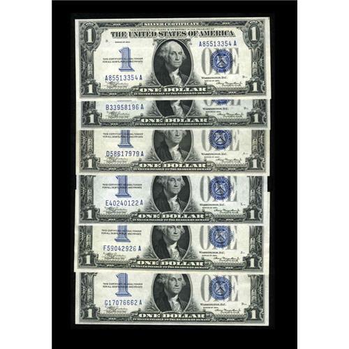 Fr. 1606 $1 1934 Silver Certificates. Six Examples.Six Fr. 1606 $1 1934 Silver Certificates. Six Exa